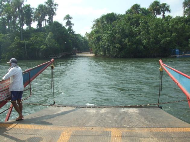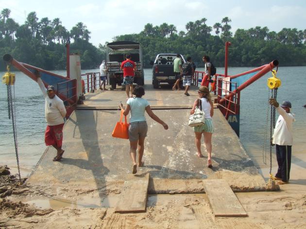 買い物を済ませると、四駆を渡し船に乗せ川を渡ります↓