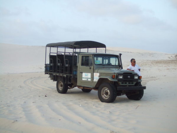セスナに乗って上空から眺めたりとかいろいろオプションがありましたが、とりあえずレンソイスの砂丘が観れればよかったので、午後2時から四駆で出発して砂丘を散歩して夕方6時くらいに帰るという、一番オーソドックスなツアーに申し込みました。これでR$50くらいだったと思う。